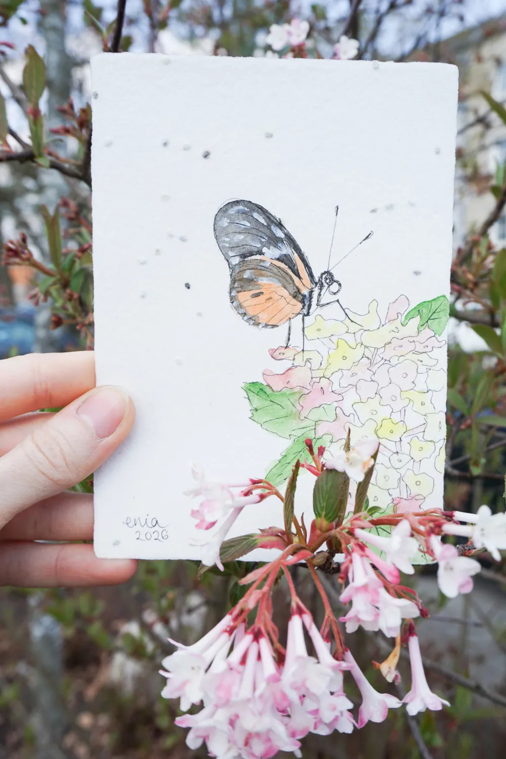 Schmetterlinge fliegen fast geräuschlos und landen sanft auf Blüten. - auf handgeschöpftem Saatenpapier (Basilikum Samen)