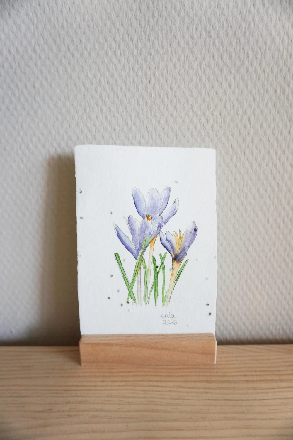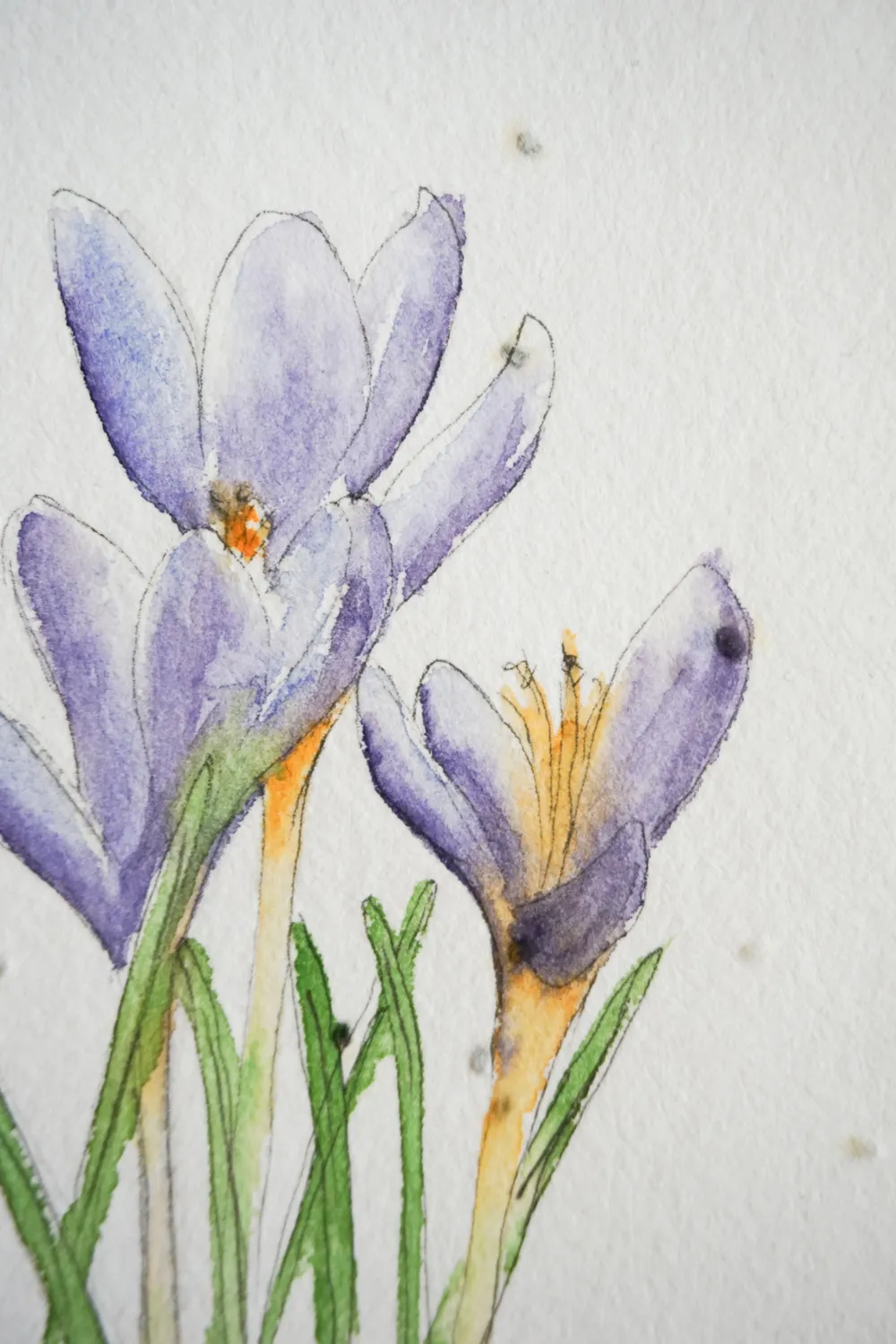 Krokusse sind mit einer der ersten Blumen, die im neuen Jahr Farbe in die Natur bringen. - auf handgeschöpftem Saatenpapier (Basilikum Samen)