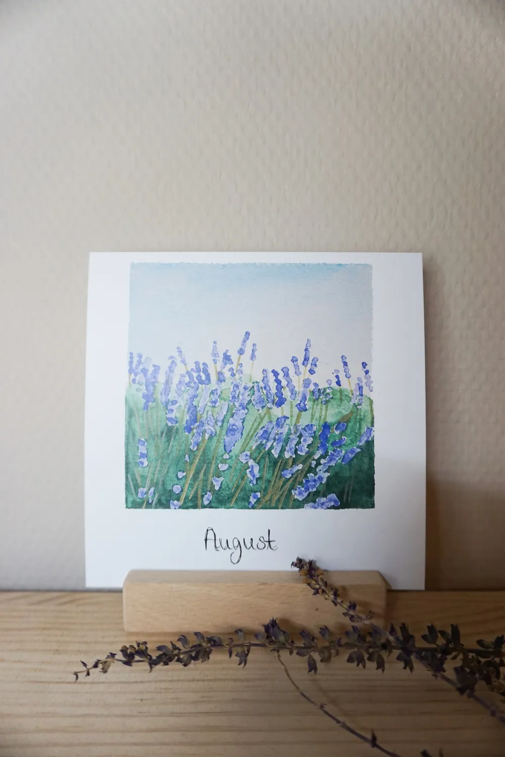 Dieser Kalender soll einen durchs Jahr begleiten. Jeder Monat hat ein anderes Bild, welches die Stimmung der Jahreszeit und des Monat darstellt - im Oktober die warme Laubfärbung oder im August der duftende Lavendel. Der Jahresbegleiter ist zeitlos und kann jedes Jahr wieder verwendet werden.