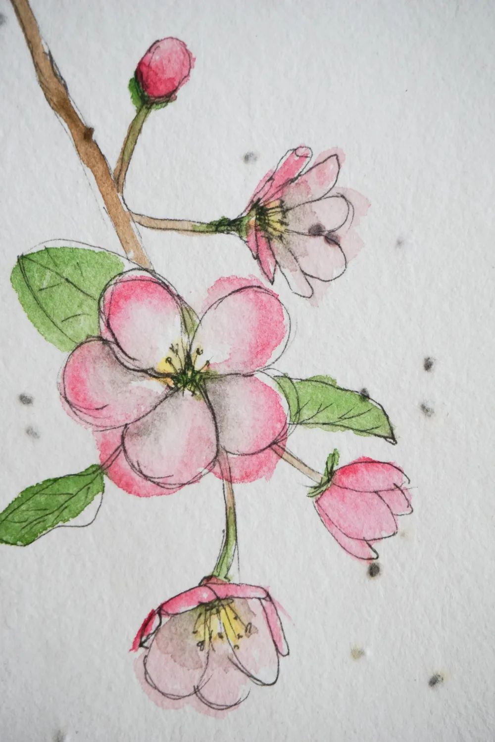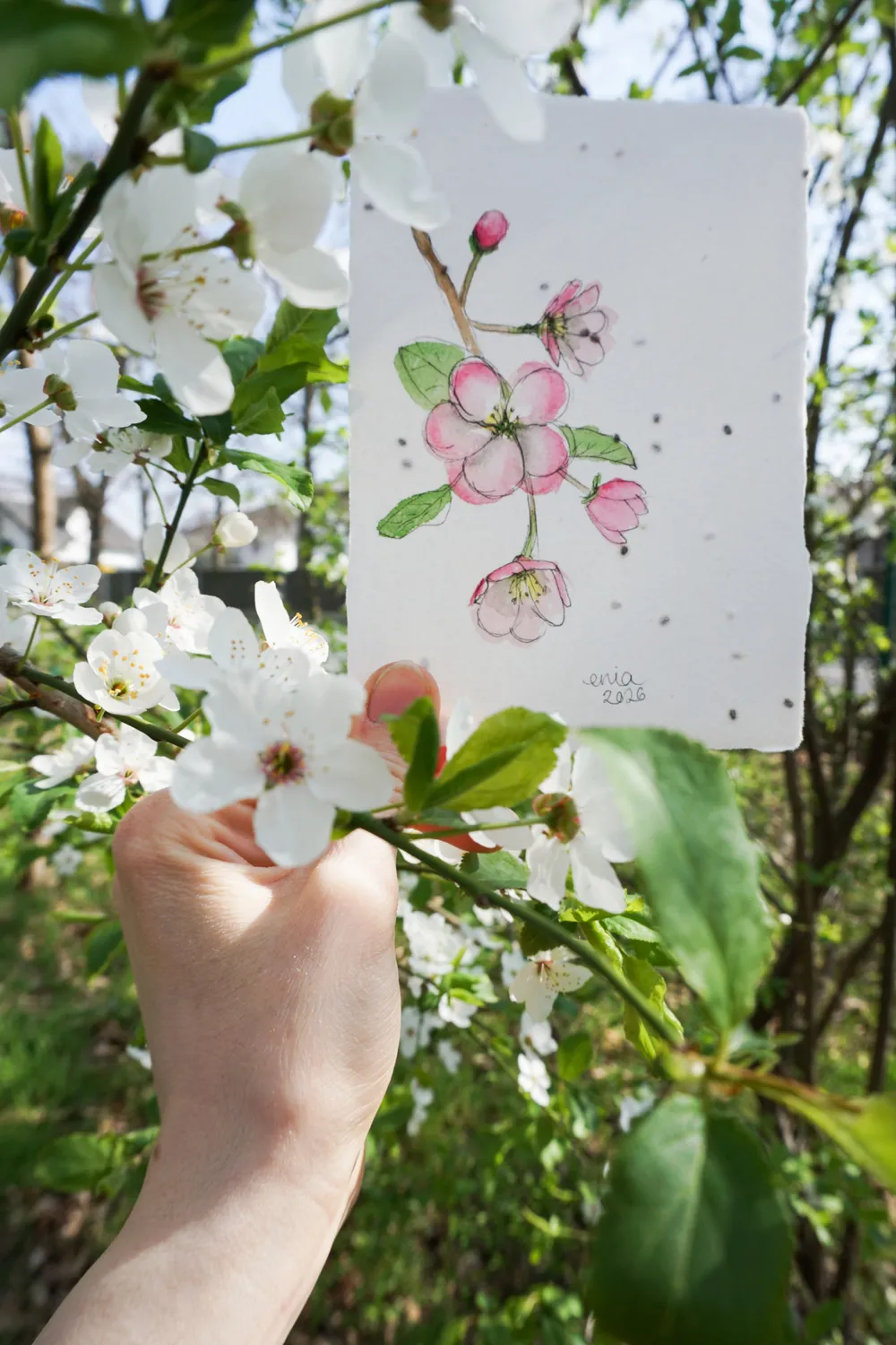 Bei so vielen Kirschblüten freut man sich schon auf die süßen Kirschen. - auf handgeschöpftem Saatenpapier (Basilikum Samen)