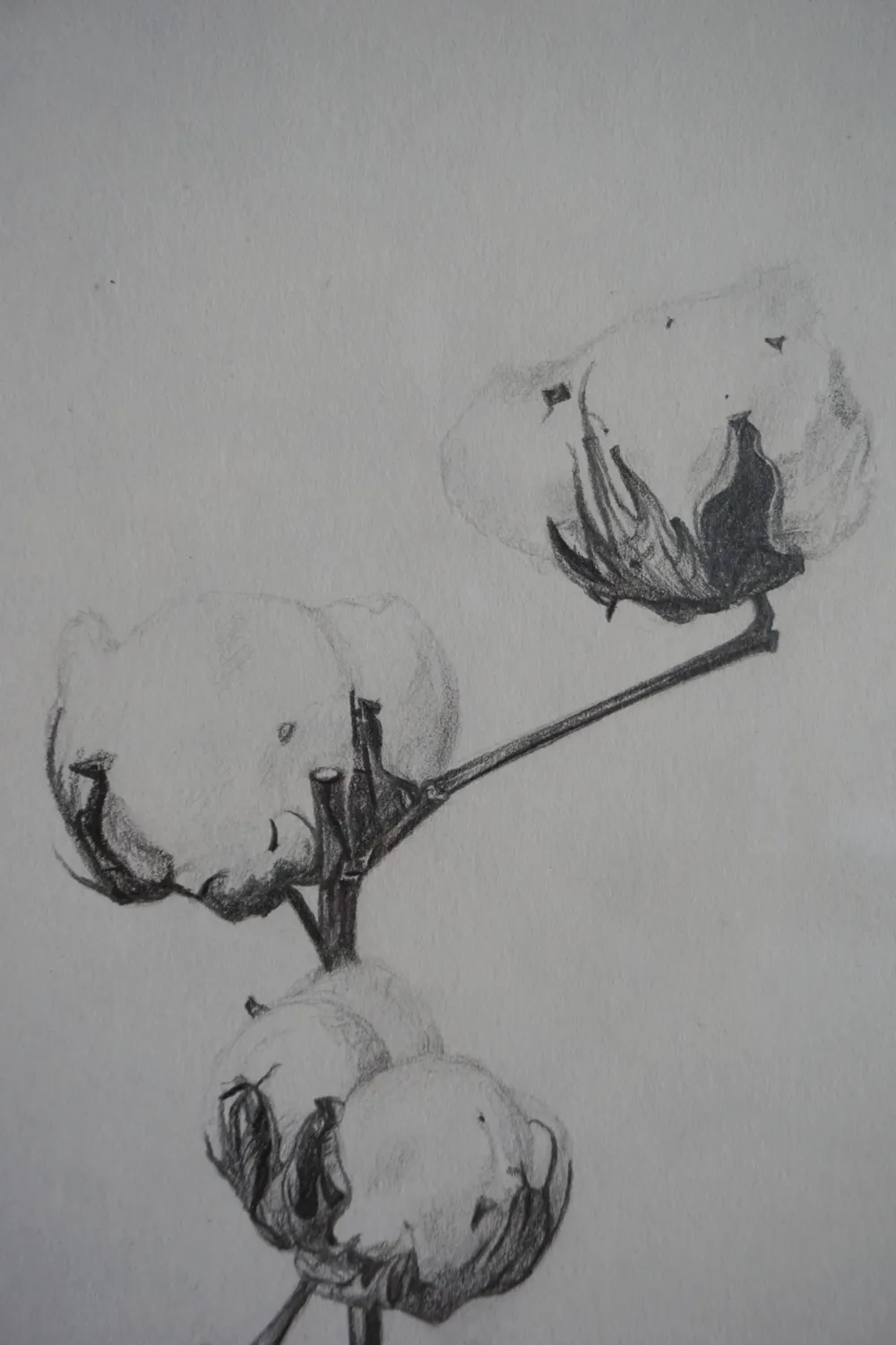 Baumwolle - die Pflanze mit den weißen bauschigen Früchten und den vertrocknet aussehenden Stilen.