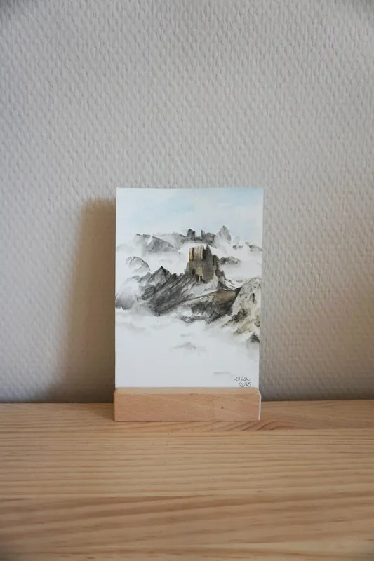 Die Wolken legen sich wie ein Schleier um die Berge. Nur die Bergspitzen ragen imposant zwischen den Wolken empor.